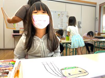 イアン先生は、この日が最後の幼稚園での勤務日でした。年長児が心の込めた手作りの似顔絵をサプライズでプレゼントしました。イアン先生はとても感激して喜んでくれました。