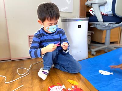 みんなそれぞれ工夫して魚を作って、たこやイカも追加して、魚釣りを楽しみました。