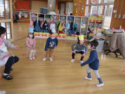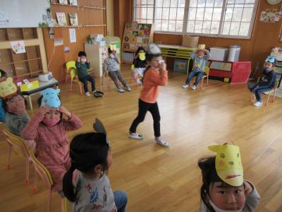 年少の子ども達はクラスのみんなと動物バスケットのゲームをしました。
