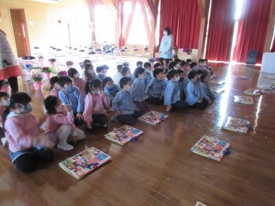 大変立派な態度でお話をよく聞き、年長さんの証書授与の姿を真剣に見ていました。
