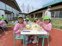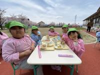 4月16日、金曜日に、年長さんはお花見給食を行いました。