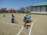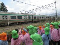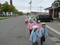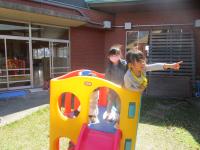 楽しく戸外で遊んだり、幼年消防クラブの結団式でりっぱに役割を果たしたり、駅まで歩いたりと、一生懸命がんばり、また、楽しく元気にすごしています。