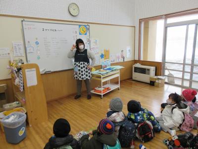 幼稚園では、どの学年も帰りに担任から絵本の読み聞かせをしています。