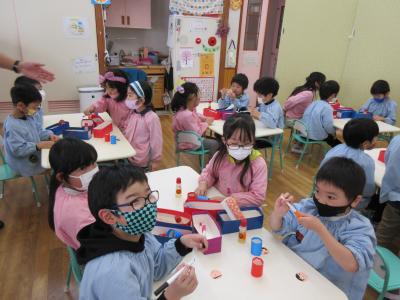 2021年2月18日 16時10分一年間、上手な歯磨きの仕方を勉強してきた年長児。