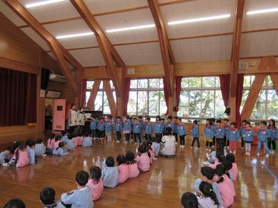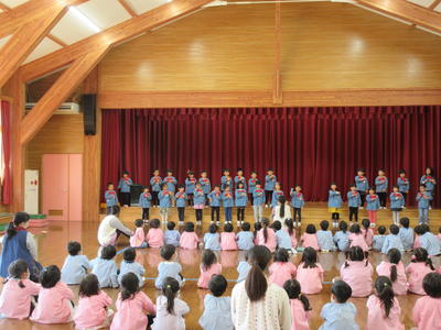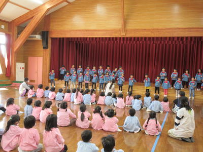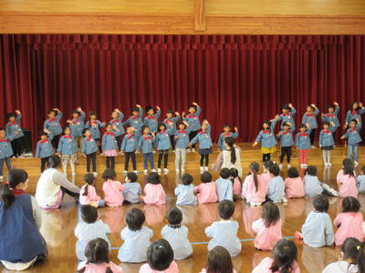 年長児が発表する予定でしたが今年はその機会がないので、園内で年少・年中児に披露しました。