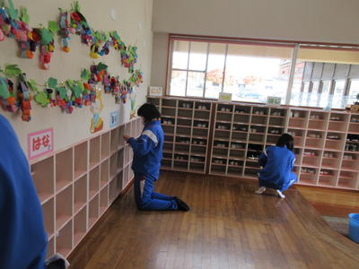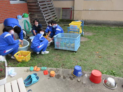 砂遊びの道具などを洗ったり、下駄箱の掃除をしたり、草むしりをしたりと、とても一生懸命に活動していました。