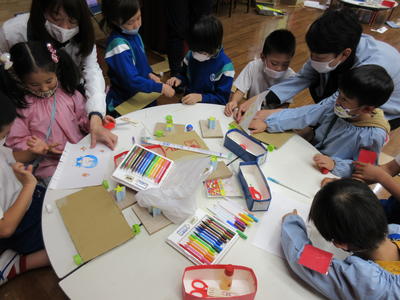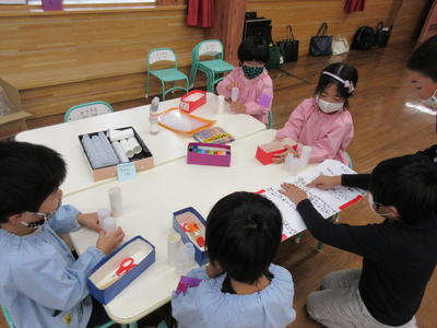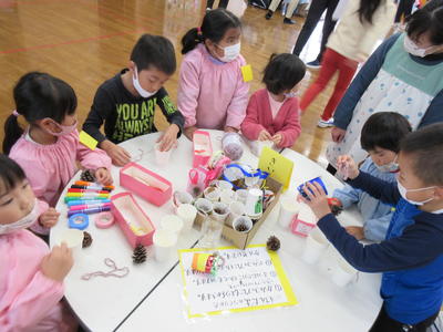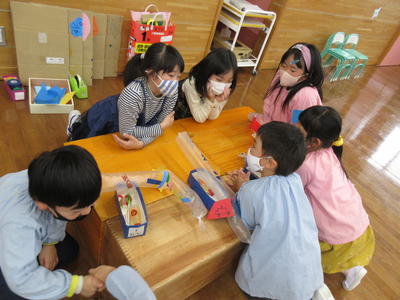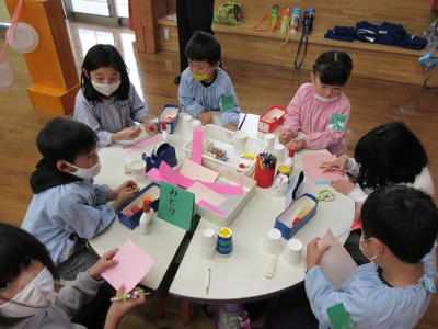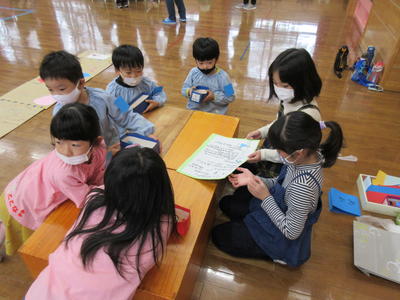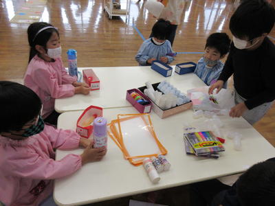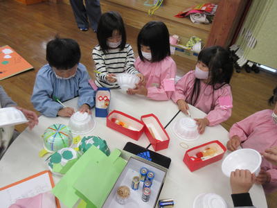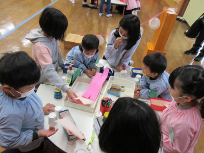 とても丁寧にやさしく教えてもらい、年長児も真剣に粘り強く作っていました。