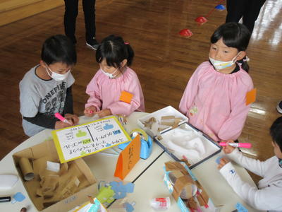 2020年11月2日 13時57分磐梯第一小と第二小の2年生が、楽しい手作りおもちゃの作り方を教えに来てくれました。