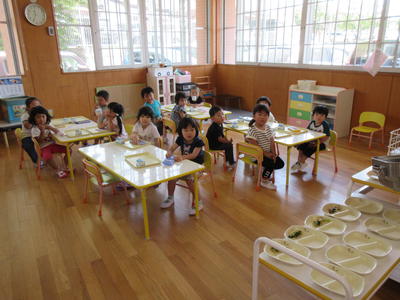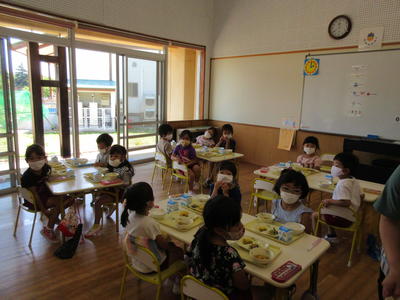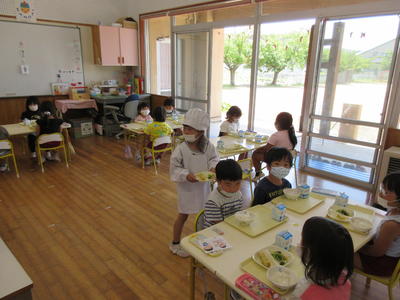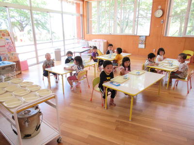 年中児もマスクをして給食を静かに待つ姿勢がとてもいいです。