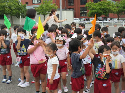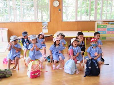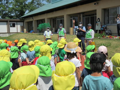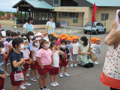 火災を想定しての避難でしたが、みんな「お・か・し・も・ち」を守って上手に避難できました。