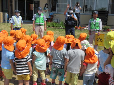 駐在所のおまわりさんと地区の交通安全関係の皆様のご指導をいただきました。