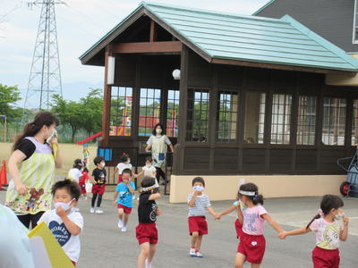 午後は好きな遊びをしたり、ハンカチ落としのゲームをしたりしました。