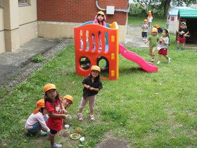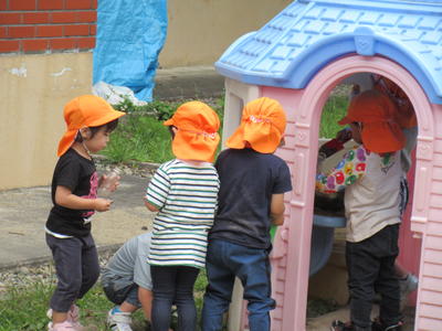 年少児のお部屋の脇の園庭で遊んでます。