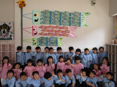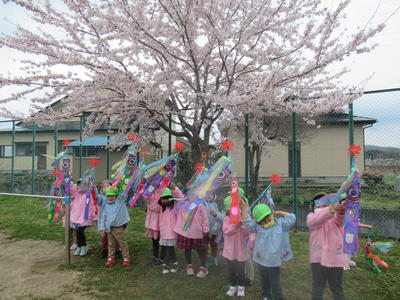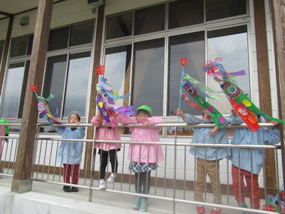年長児は、一人一人のこいのぼりを合わせて、大きなこいのぼりにしました。