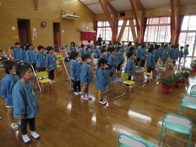 入園式の前に、年長児と年中児は始業式を行いました。