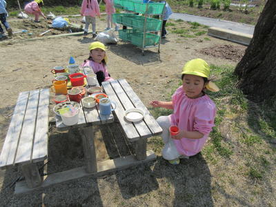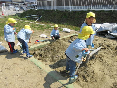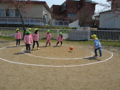 園での生活にもずいぶん慣れて、園庭に出て遊ぶことが楽しくなってきました。