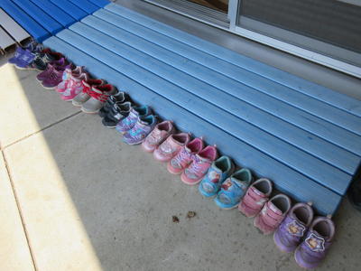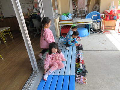 子供たちは、自分の履物をきちんとそろえています。