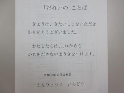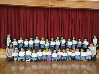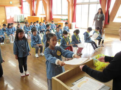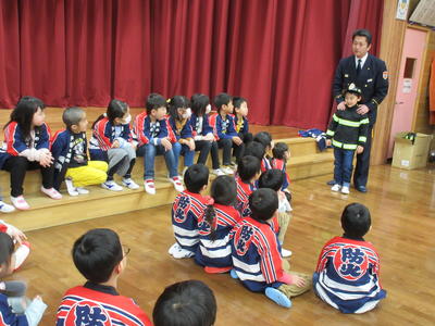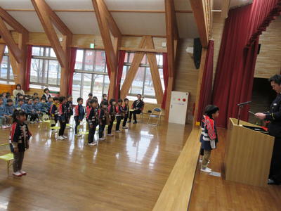 2020年2月26日 11時12分年長児は1年間の防火活動が終わり、猪苗代消防署磐梯出張所長様より「期待書」をいただきました。