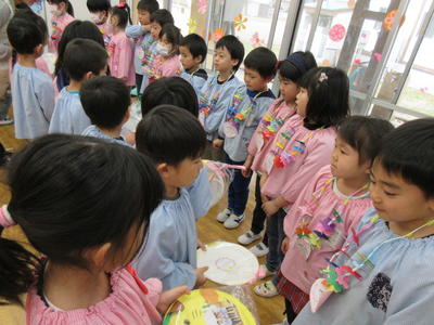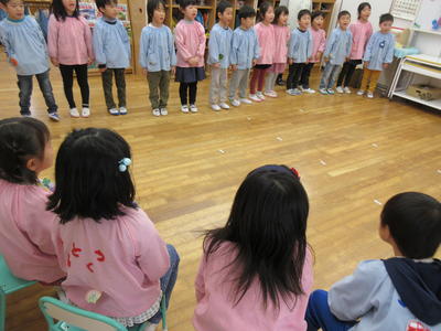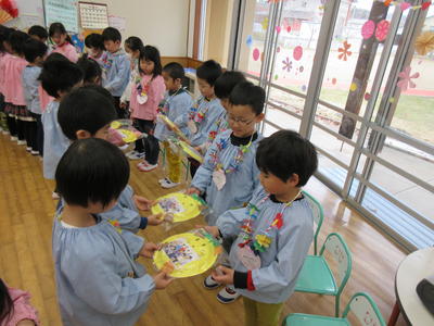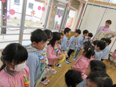 2020年3月10日 11時02分予定していた「おわかれ会」の内容を変更しましたが、年中児・年少児が年長児への感謝の気持ちを込めて行いました。