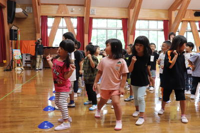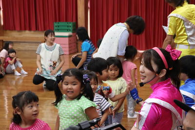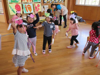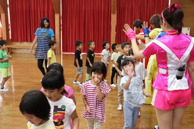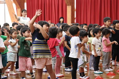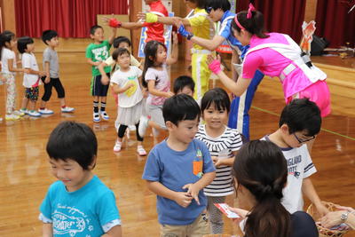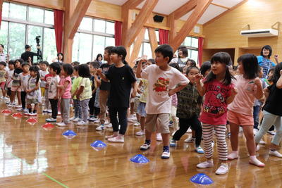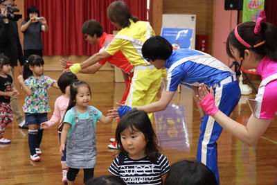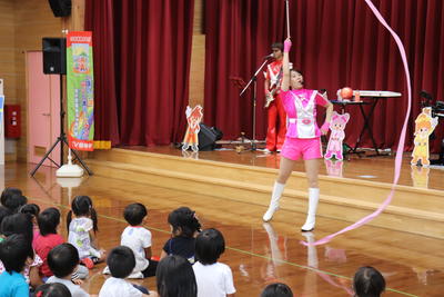 キッズマンのお姉さんの新体操のテープ操作にあこがれて、終了後に真似っこする子が続出しました。