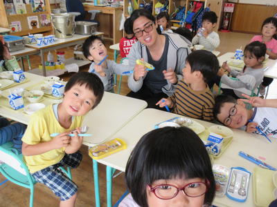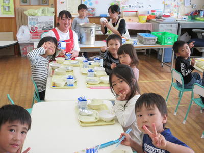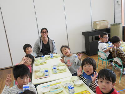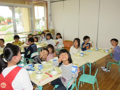 子ども達は一緒に楽しく遊んだり給食を食べたりしています。