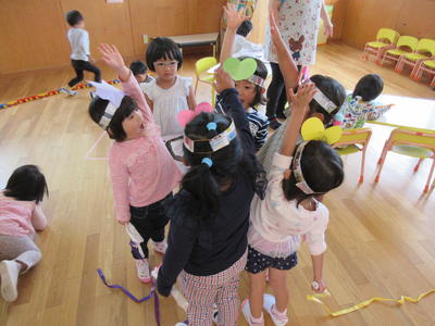 年長児は、恒例となったバルーンの練習をしました。心と技を合わせようと頑張っています。