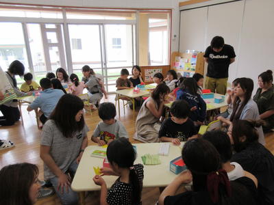 その後、担任の話をしっかりと聞き、カニや魚を折り紙で制作しました。
