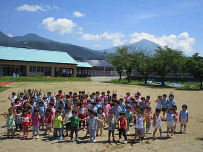 梅雨の晴れ間に園庭でみんなで写真を撮りました。