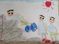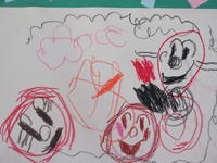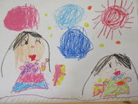 年少児は、お家の人の顔を描きました。