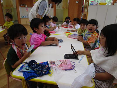年長児は、遠足の思い出を描きました。