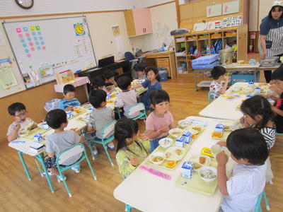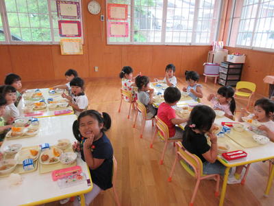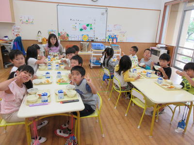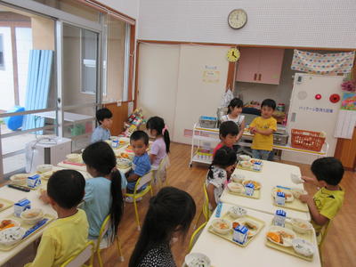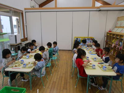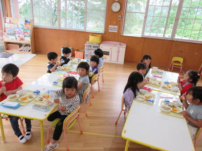 年少児は、スプーンで残さずに食べることができるようになってきました。