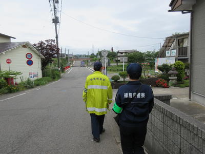 最近の全国の痛ましい事故を受けて、猪苗代警察署と磐梯駐在所の皆さんと、幼稚園の散歩コースの安全点検を行いました。