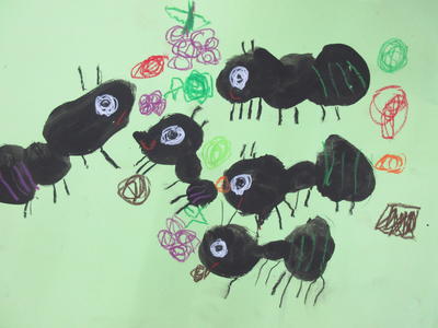 年中児は、蟻の絵を描いている途中です。