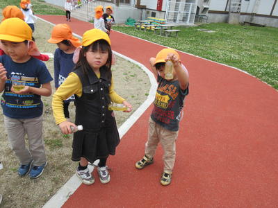 幼稚園に集まってから、仲良く一緒に大寺一区の公園に歩いて行きました。