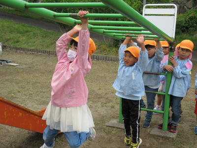 公園では、6班に分かれて遊具で遊んだり、長縄跳びや花1いちもんめをしたりしました。