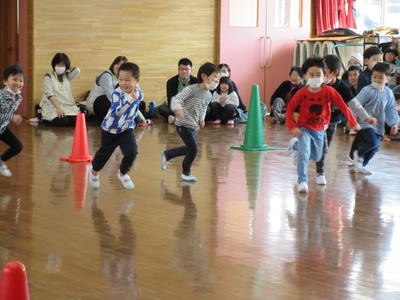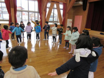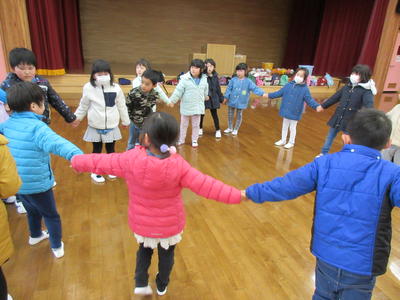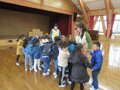 今日は、年長さんとのお別れ会をお遊戯室でしました。