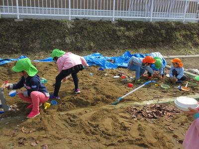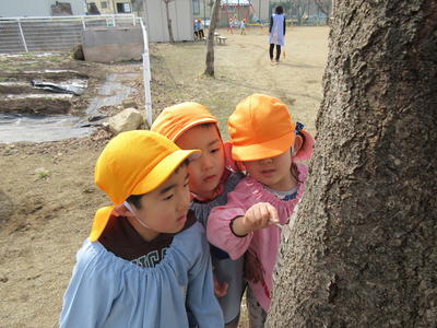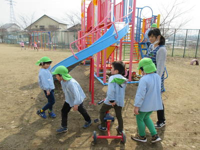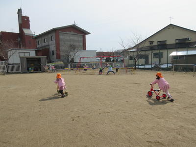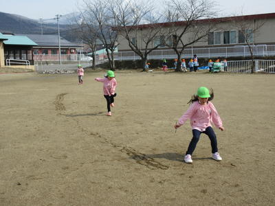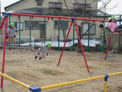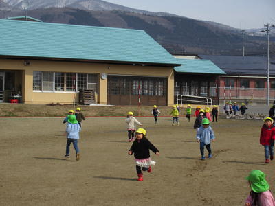 日に日に暖かさが増し、幼稚園の園庭もすっかり雪が融けました。