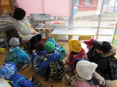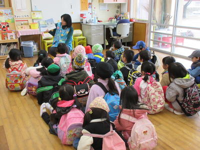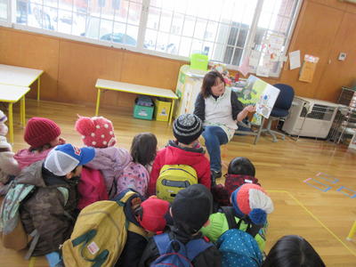 お帰りの前に、それぞれに読み聞かせを聴いて、心をほんわりあったかにしました。