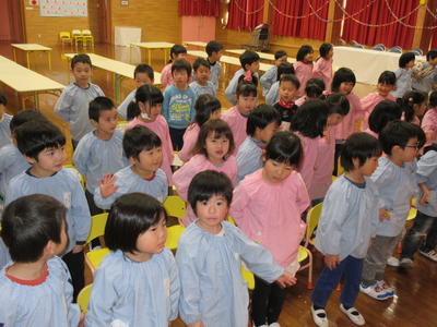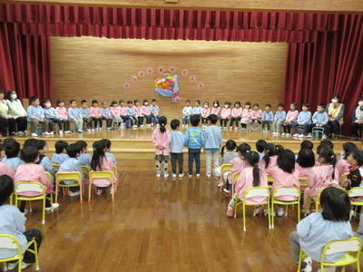 年中さんが、一人一役で司会や始まり・終わりの言葉、おやつ係、誘導係などをしました。ちょっぴり悲しい気持ちになりましたが、みんなで思い出に残る時間を過ごすことができました。