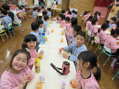 最初は緊張して顔もこわばりがちたった年少児も、だんだん打ち解けて楽しそうに会食していました。