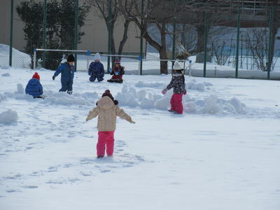 午後からは、快晴の中、雪遊びをしていました。