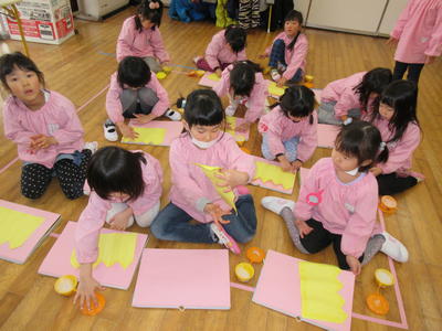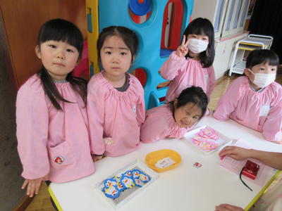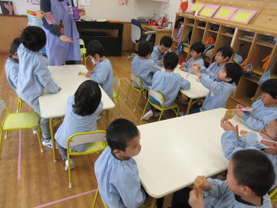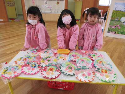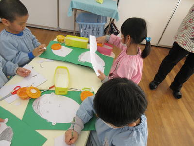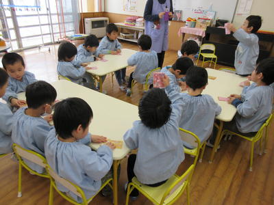 年中児は、ひな祭りにちなんで、制作を行いました。