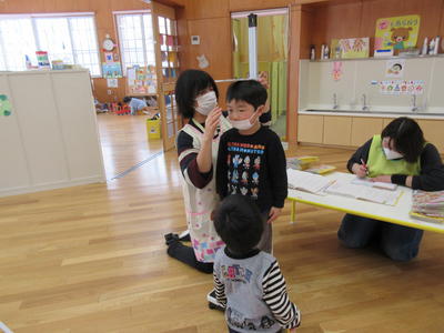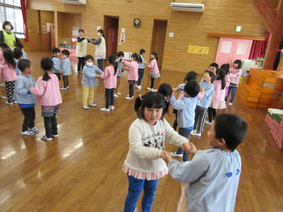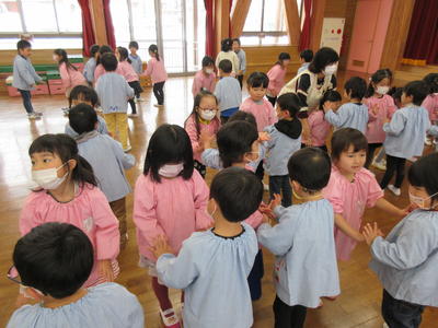 保護者の方々へ入園説明をしている間、年少児が一緒に遊びました。