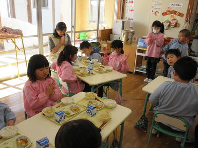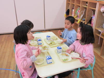 年長児は、来年から小学校で給食を食べる準備として、2月から小学校で使用する箸を使い始めました。