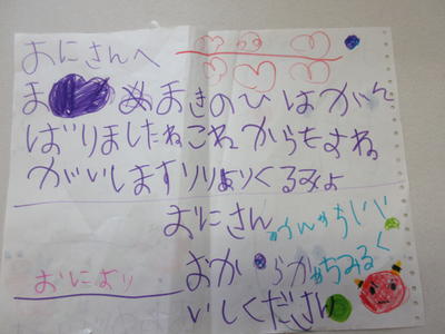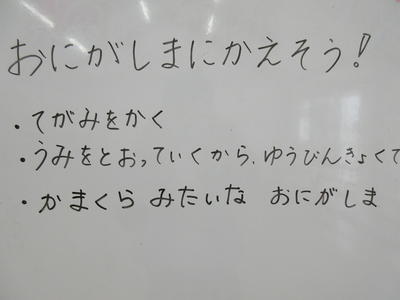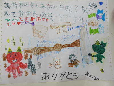 年長児は、鬼の手が壊れてしまったことを心配して、鬼にお礼の手紙を書きました。
