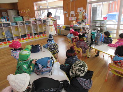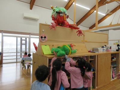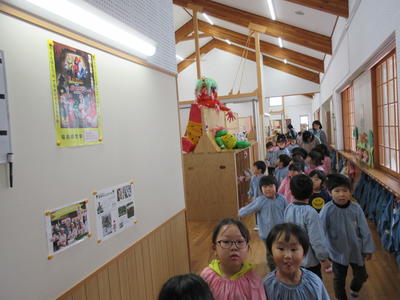豆まきの時は、お遊戯室のステージの上にいたはずなのに・・・
