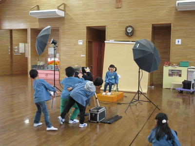 アルバムの個人写真撮影もありました。友だちが笑顔で撮影できるようにと写真屋さんの後ろから笑わせようとする微笑ましい光景もありました。