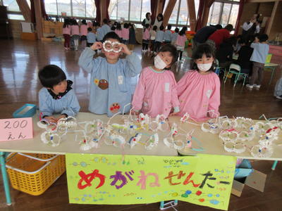今年のお店は、年長児が、「ぽーちや」「めがねせんたー」「ぼーりんぐ」の3店でした。