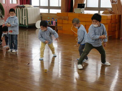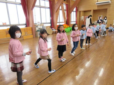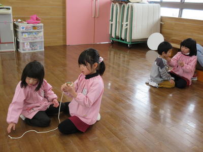 年少児と年中児が注目する中、ひもごまを披露しました。
