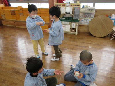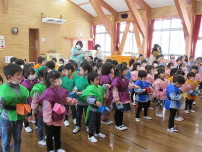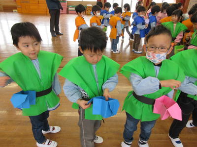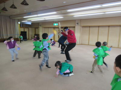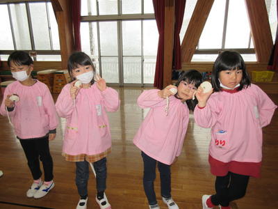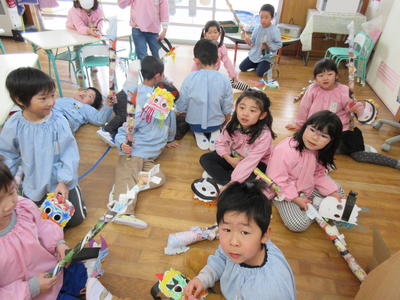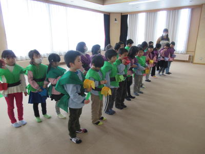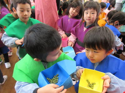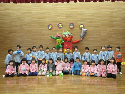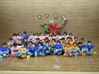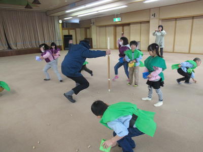 年少・年中児は「鬼は外、福は内」と大きな声で叫びました。